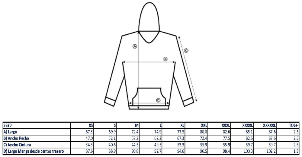 M&O SUDADERA UNISEX FELPA SIN CIERRE CON CAPUCHA 3320