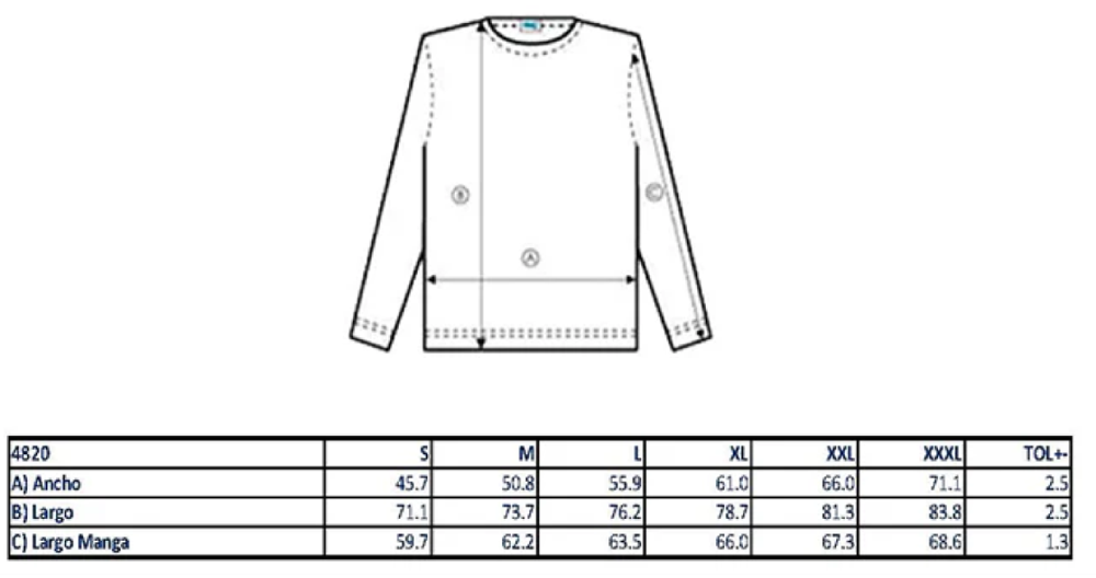 M&O MANGA LARGA (COLOR 100% ALG,JASPE 90/10 ALG/POL,JASPEADOS 50/50) 4820